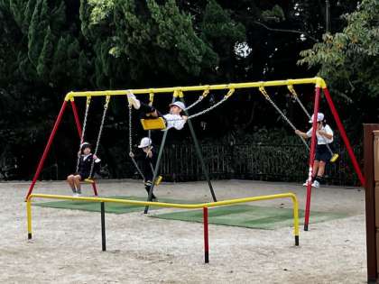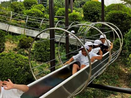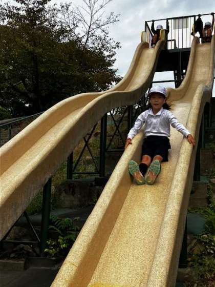 よく滑る石の滑り台と、全然滑らないローラー式滑り台。