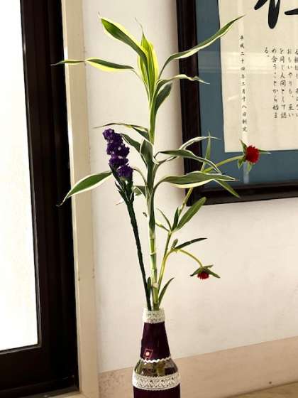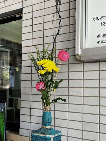 今朝、ボランティアの方がお花を生けてくださいました。玄関・事務室前・廊下・校長室前・職員室。