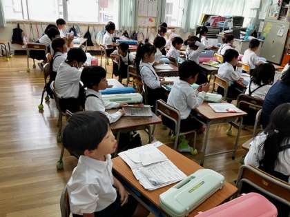 1年生の音楽。「きらきら星」を日本語・英語・韓国語・中国語で歌っています。