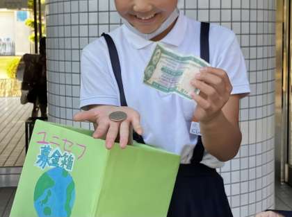 今朝もユニセフ募金活動が児童会で行われました。毎日、多くの人が募金を持ってきてくれます。
