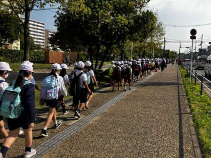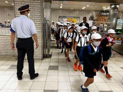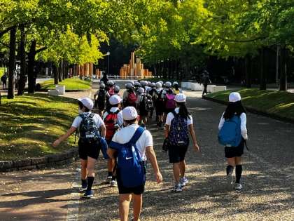 駅からたくさんの学校が数珠つなぎで公園に向かっていました。堺市の遠足のメッカですから、今日は遠足の学校でいっぱいです!