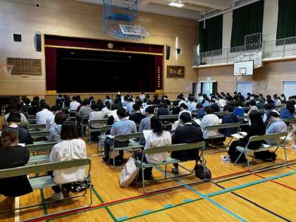今日は、夕方に北区の小・中学校の教職員が豊仁小学校に集まって、人権教育実践交流会という研修会を行いました。