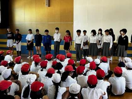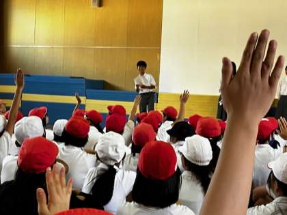 校長先生や体育の先生の説明の後、生徒会長さんが、楽しく部活動についての話をしてくれました。