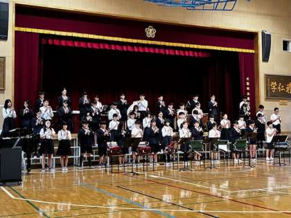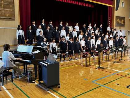 6年生は、「仲間と音楽で織りなす自然と平和のメロディ」という崇高な内容の発表です。