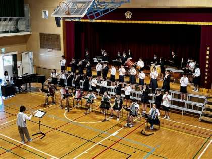 「地球星歌」という歌を合唱します。そして「サウンド オブ ミュージック」を笛で合奏。最後は、たくさんの楽器を使って「アフリカン シンフォニー」を合奏します。