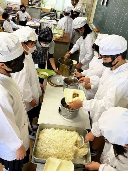 今日の「いただきます」ショットは、5年1組でした!今日はこのクラスにC-NETの先生が一緒に入っています。C-NETの先生は、勤務日は順番にクラスを変えて、給食を一緒に食べてくれています。