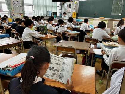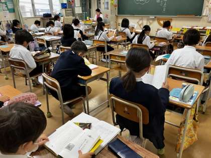 毎日、図書委員さんが読書タイムについて放送してくれています。どの教室でも、担任の先生も一緒に全員で読書しています。