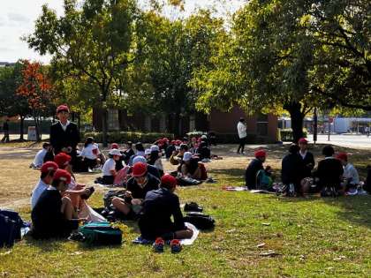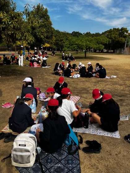まず長居公園でお弁当タイムです。英気を養って、これからスタジアムに向かいます。
