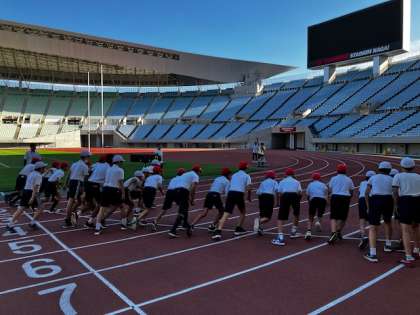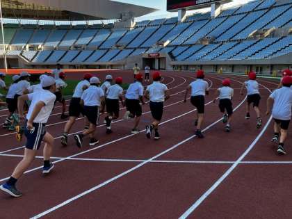 男子から。コース一周なので、最初は速いペースですが、だいぶとキツくなってきます。速い子で1分一桁台です。全員、頑張って完走しました。