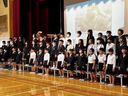 テレビでたまに見る児童合唱団のような、元気な場面では元気な歌声、悲しい場面では悲しい歌声です。