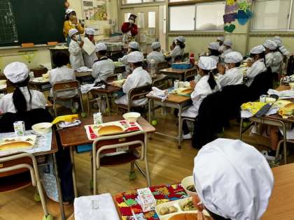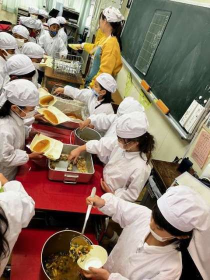 今日の給食献立は、コッペパン・焼き焼売・ツナと野菜のオイスターソース炒め・中華味噌スープ・ソフトマーガリン・牛乳です。