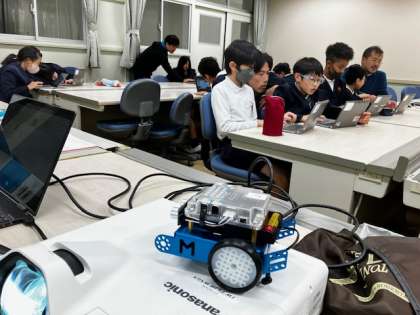 今回はペッパーくんではなく、プログラミングで動かすモーターカーに挑戦しています!