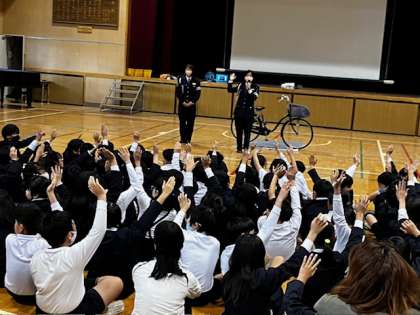 普段、自転車に乗る人は?という質問にほとんどの子が手を挙げていました。ヘルメットをかぶっている人は?の質問には、ぐっと減りました。命を守るためにヘルメットは必ずかぶるようにしてください!とおっしゃっていました。
