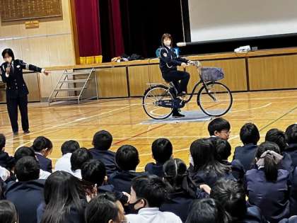 4時間めは、4〜6年生の交通安全指導をしました。高学年には、自転車の乗り方を中心にお話ししていただきました。
