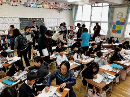 今日は、1年生の教室で国語の研究授業が行われました。