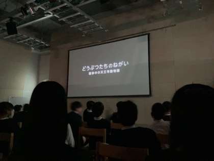 見学後、全員で映画を観ました。「どうぶつたちのねがい」という戦争中に、天王寺動物園で起きた実話をアニメ化したものです。