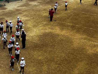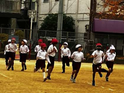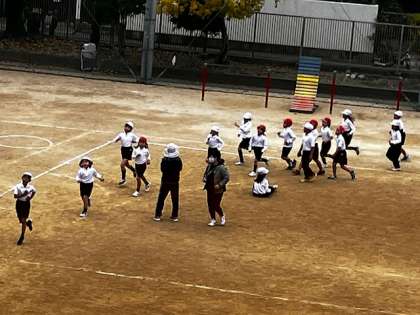 体操服に着替えて運動場に出てきた時は「寒い〜」と震えていましたが、走った後は頬っぺたを赤らめて、元気になっていました!