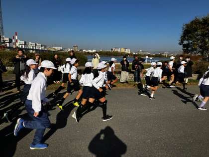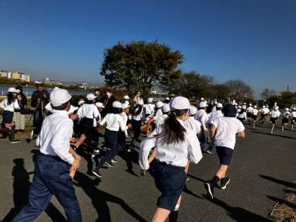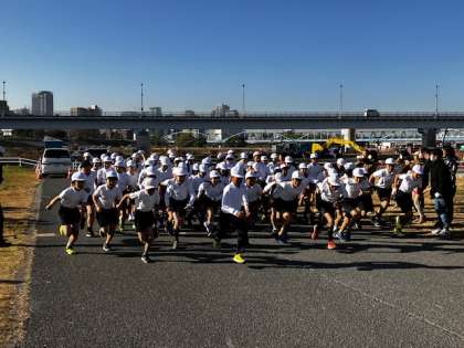 9時30分、5年生がスタートしました。高学年は約2.4キロメートル、約10分から20分走ります!