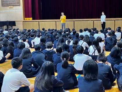 先生方からは、良いこととして、あいさつをしっかりできる人が増えたこと、できていないこととして、トイレのスリッパが散らかっていることが多いこと、また、長ズボンを履く人が増えてきていますが、長ズボンの上にスカートは履かなくていいですよ、とお話がありました。