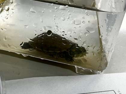 3年生の教室で飼われているカメです。このカメの名前が決まりました。