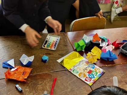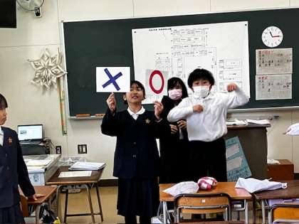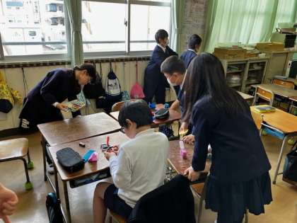 4年生の教室。明日のお楽しみ会のために、準備が進んでいます。