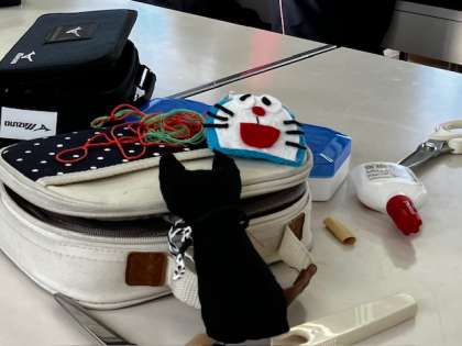 ハンドメイドクラブでは、以前から取り組んでいたマスコットづくりの大詰めです。写真は可愛く出来上がったドラえもんとネコです!