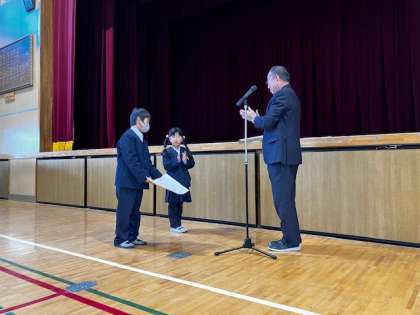 表彰は、大阪市の防火防災図画で、1年生と5年生が一人ずつ入選しました。おめでとう〜!