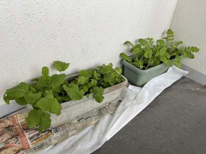 3年生が種を蒔き、毎日水をやって大事に育てていた、田辺大根・天王寺かぶら。