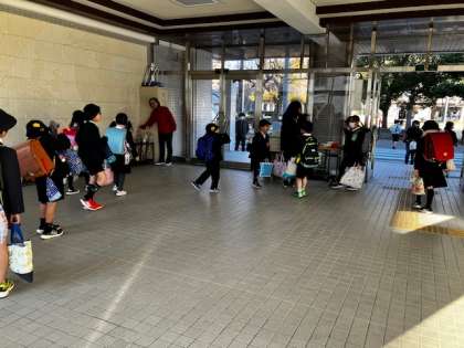 今日は午後2時半に一斉に下校しました。玄関にいると、「よいお年を〜!」と言ってくれる子も多かったので、感心しました。
