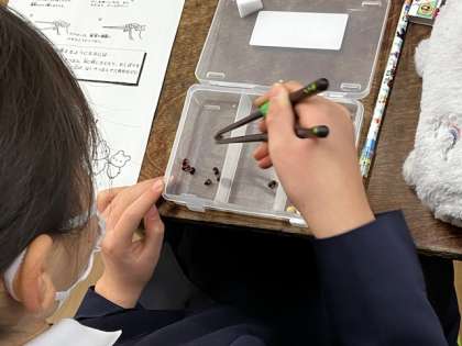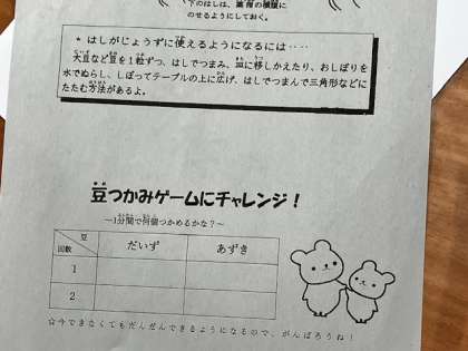 今日は、3年生で豆つかみをしていました。大豆と小豆、10個を何秒で移動できるか挑戦します!