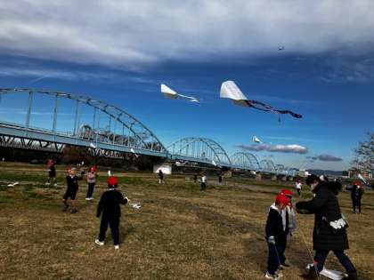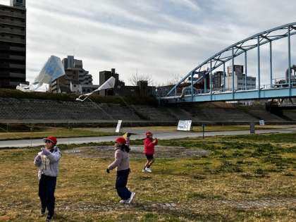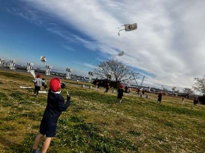 風が少し強めに吹いてくれているので、凧から手を離した途端に、空に向かって飛んでくれます!