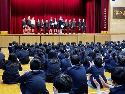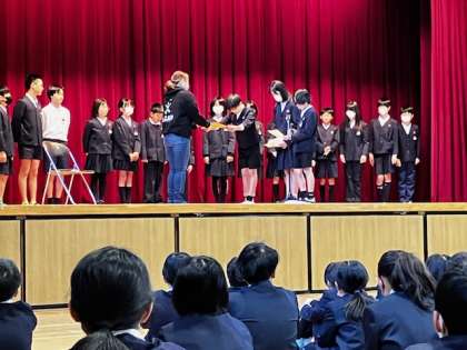 そして、給食委員会から給食調理員さんに感謝状を渡して、日頃のお礼を述べました。調理員さんからも「これからも美味しい給食づくりに励みます」とおっしゃってくださいました。