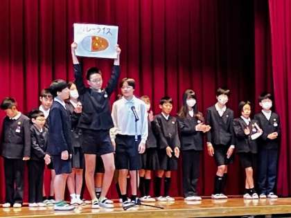 今日は、給食委員会が各学年の人気給食献立トップ3を発表してくれました。どの学年も圧倒的に「カレー」が人気でした!続いて「唐揚げ」「ピザ」などが入りました。