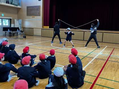 最後に、ちょっとウルトラな回し方で、パフォーマンスを披露してくださって、6年生全員と記念写真!