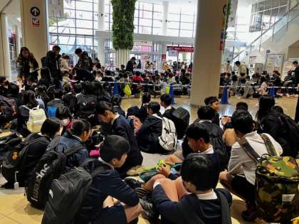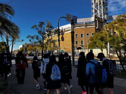 一番乗りをめざしましたが、もう地元の学校がたくさん来ていました!