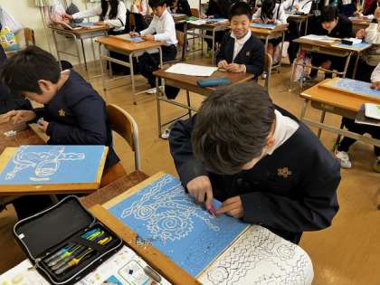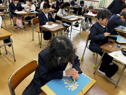 4年生の図工の時間、木版画に取り組んでいます。題材は「私の想像の花」。