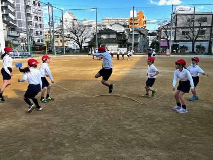 3年生の体育。なわとび週間をいよいよ来週に控えて、練習にも熱が入ってきています。