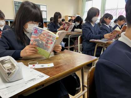 毎朝8時30分に、図書委員さんが放送で読書タイムについて話してくれます。