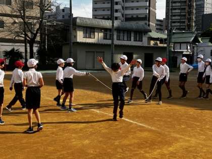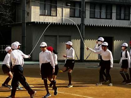 5年生の体育。縄跳びの練習では、5分間で270回を超えました!次から次へと流れるように跳んでいきます。どんどん記録が伸びてます!