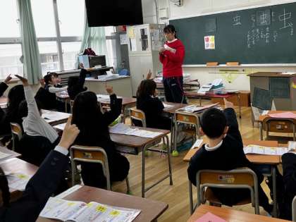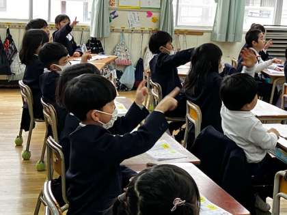1年生の国語の時間。1年生は国語の授業が毎日2時間ずつあります。社会科や理科は3年生からなので、国語や生活科で学習の基本的なことを獲得していきます。