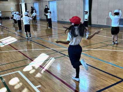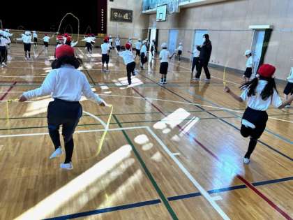 まずは前回し、後回しから、片足跳び、駆け足跳びへと続きます。