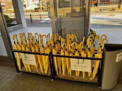 PTAからの寄付で設置された豊仁小貸し傘。先日の雨の日、たくさん借りて帰った傘が、全部戻りました。