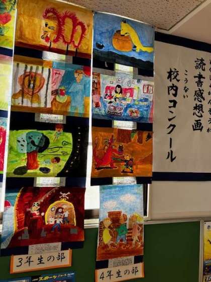 読書感想画コンクールが開催されています。各学年で選ばれてきた作品から、最後に教職員の票数で入賞を決めることになっています。
