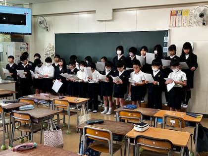 4年生で何かの練習をしています。4年生は卒業式には参列しないので、何かな?と思って聞いていると・・