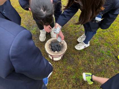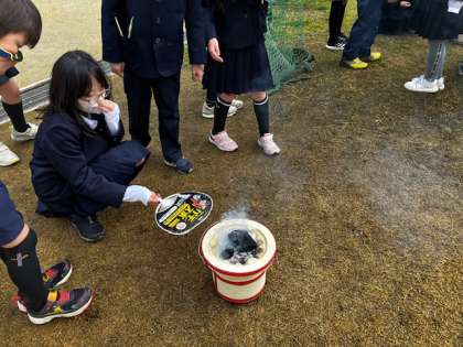 3年生での昔体験、洗濯板体験に続く第2弾、七輪体験を行いました。