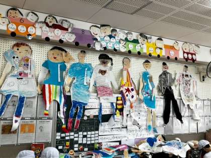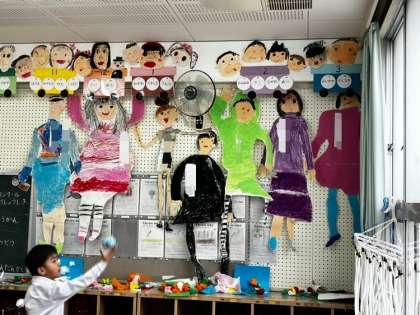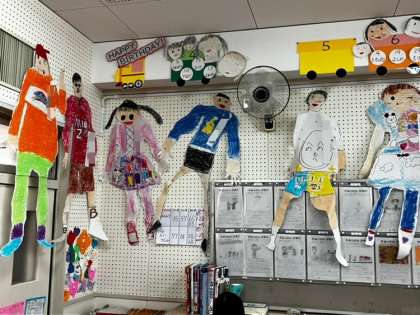 1年生の生活科で取り組んでいた「等身大の自分」。作ってみると、自分が思ってたよりも大きくなっていた感じのようです!
