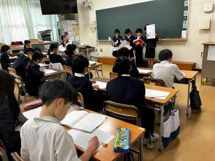好きな教科、嫌いな教科、習い事の内容や時間など、みんなの身近な事柄を、自分たちで実際にクラスメートに調査して発表していました。