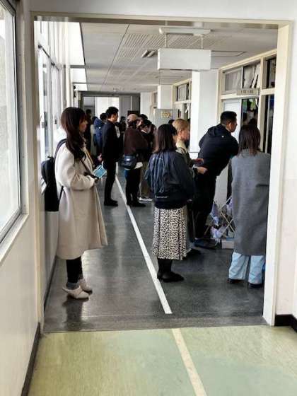 授業参観、どの学年も大勢の保護者の方々が来てくださいました。教室内に入りきれないので、廊下にいっぱいです。