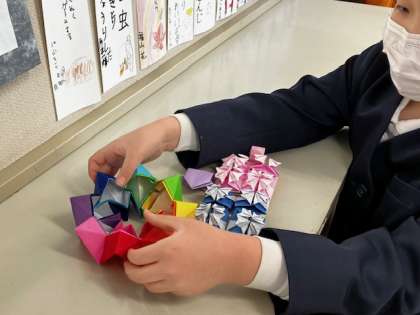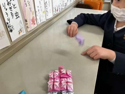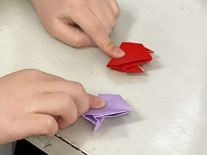 折り紙で楽しいおもちゃを作ってくれました。どうなってるのかな!と思う仕組みにビックリしました。