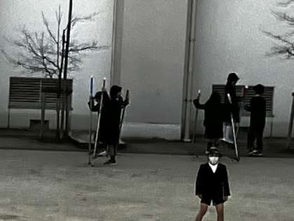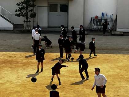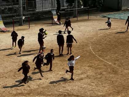 お昼の休憩時間、いい天気なので、たくさんの子どもたちが運動場で遊んでいます。
